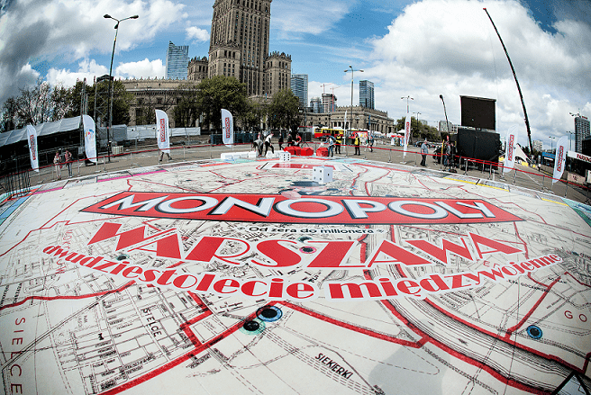 Czy wiesz, że w Warszawie zainstalowano największą na świecie tablicę „Monopoly”? Rekord Guinnessa został ustanowiony w 2014 roku. Warszawska plansza „Monopoly” ma powierzchnię 405 metrów kwadratowych. Pierwszy rekord należał do Holandii w 2012 roku: ich „Monopoly” wynosiło 225 mkw.