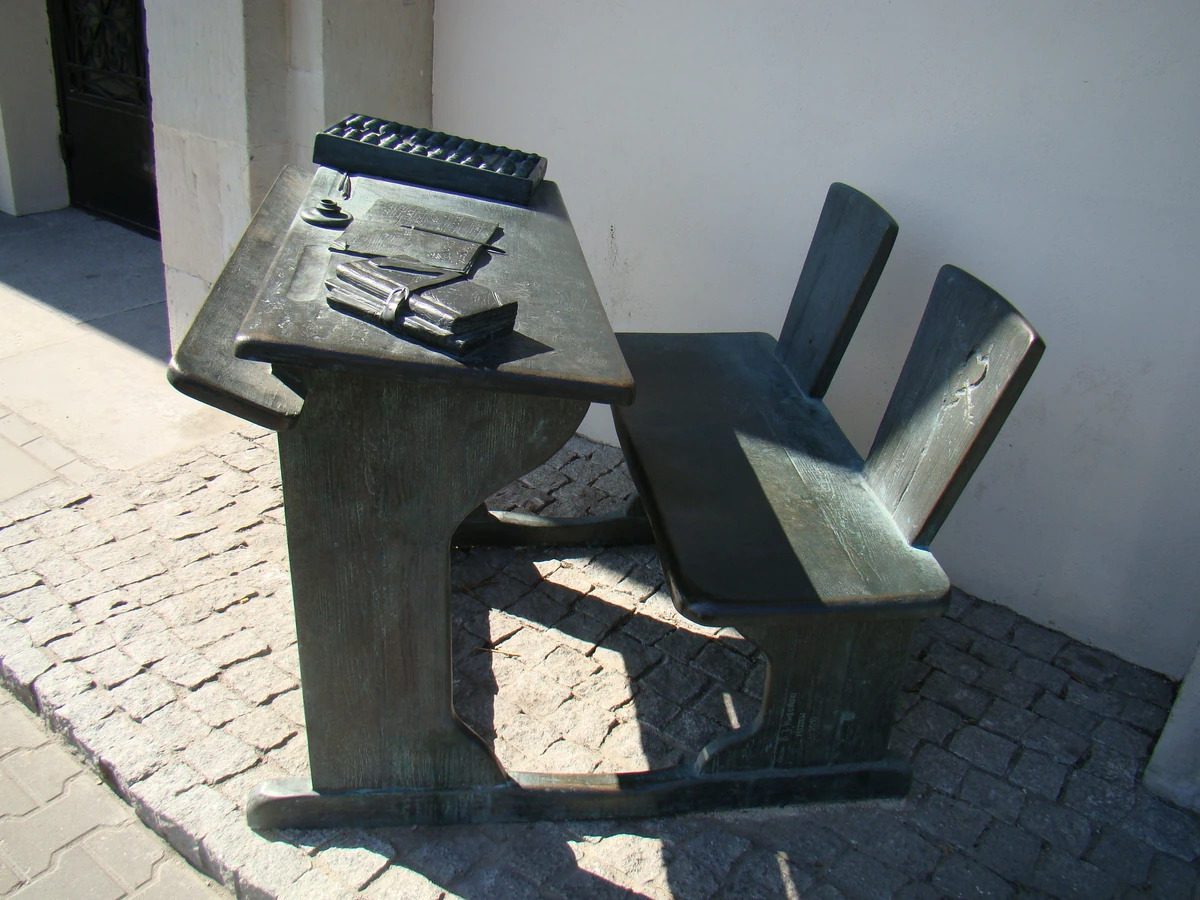 Пам’ятник було встановлено у 2010 році на честь 105-річчя Союзу польських учителів. Що особливого у звичайній шкільній парті, запитаєте ви? Скульптор вклав у свою роботу значно більше сенсу, ніж може здатися, на перший погляд. Скульптура покликана викликати у людей приємні спогади про школу, вчителів, юність та трепетні емоції.